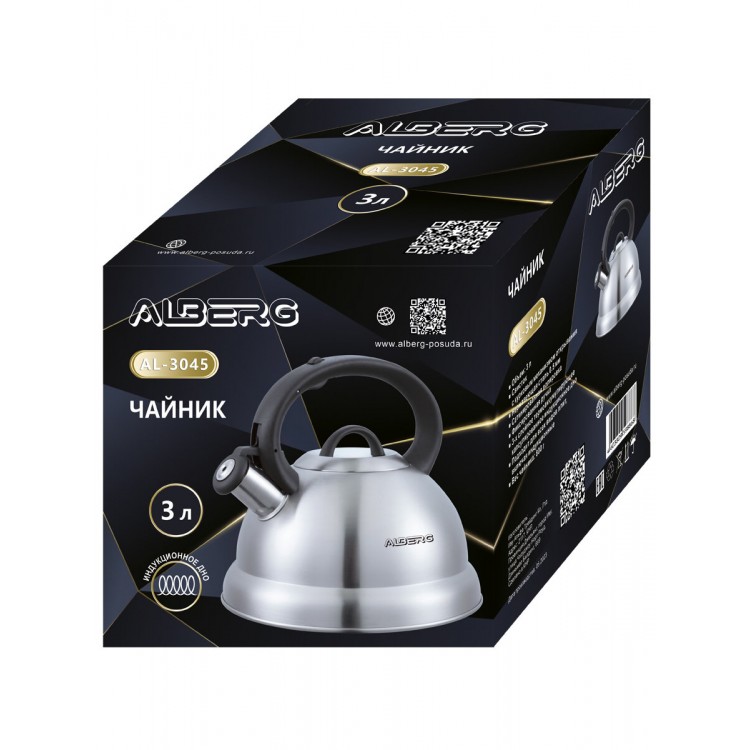 | Название | Чайник для плиты со свистком ALBERG AL-3045 3 литра, матовая полировка |
