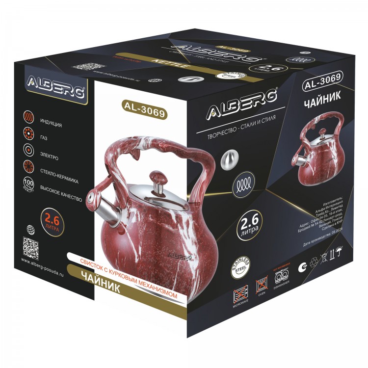 Купите чайник Alberg AL-3069 в интернет-магазине NicePrice62 в Рязани прямо сейчас и наслаждайтесь его надёжностью и стильным дизайном каждый день! В комплекте вы получите не только чайник, но и инструкцию с коробкой. Не упустите свой шанс купить качественный товар по выгодной цене!
