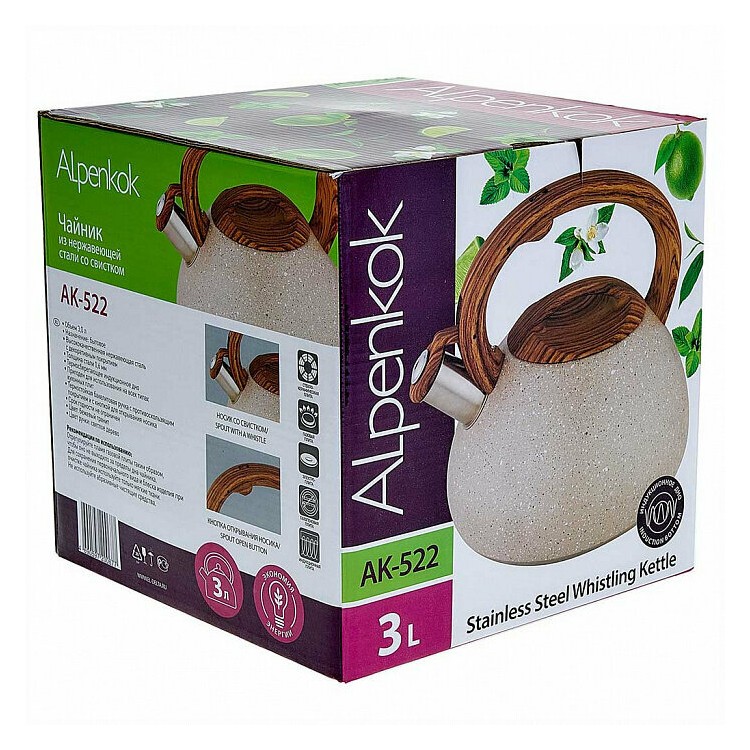 | Название | Чайник со свистком Alpenkok AK-522, нержавеющая сталь, бежевый, 3 л |