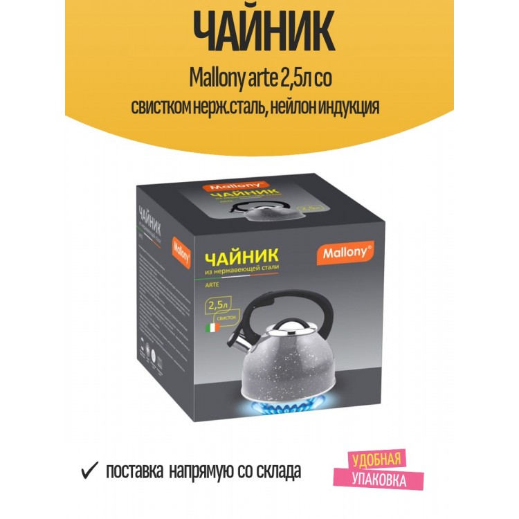 | Название | Mallony Чайник со свистком Arte, 2.5 л |