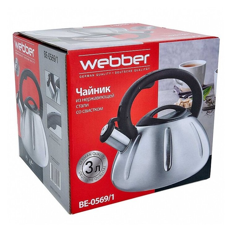 | Название | Webber Чайник со свистком BE-0569, 3 л, 3 л, серебристый |