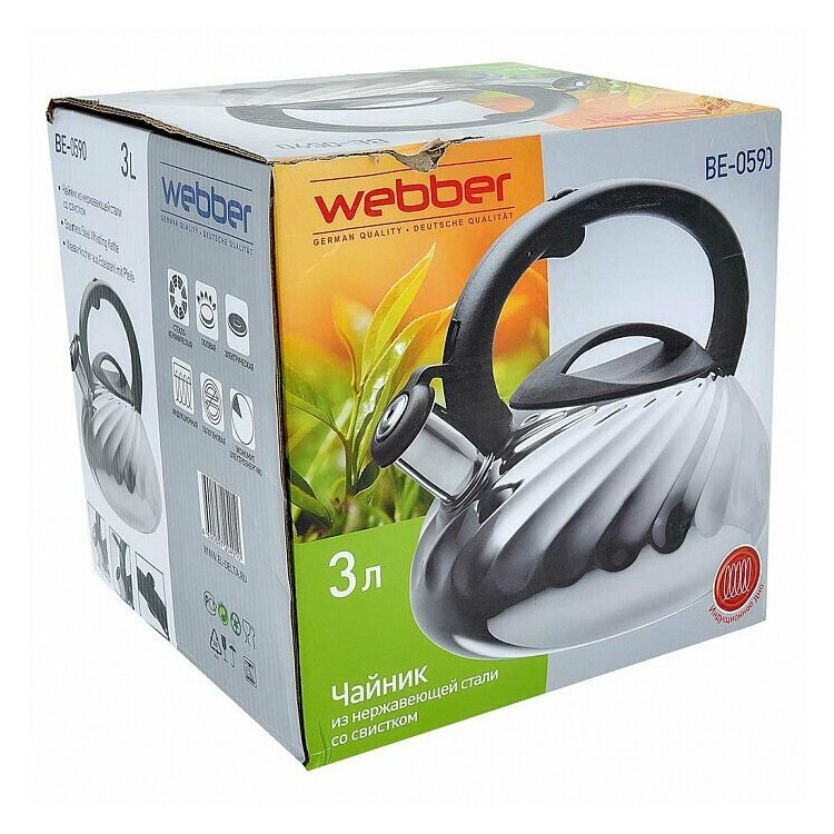 | Название | Чайник со свистком Webber BE-0590 из нержавеющей стали, объём 3 литра |