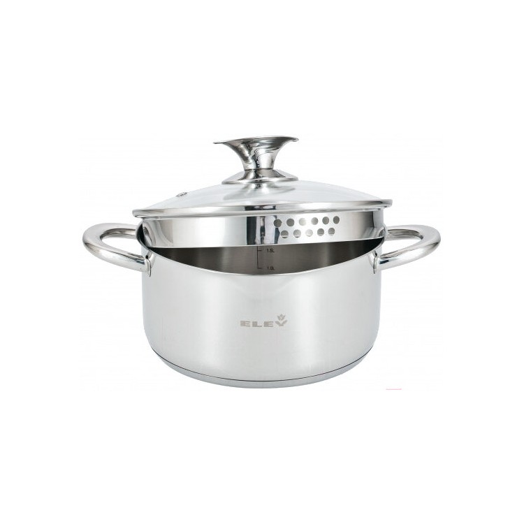 Кастрюля Eley изготовлена из высококачественной нержавеющей стали и оснащена антипригарным покрытием, что обеспечивает лёгкость в использовании и уходе. Подходит для индукционных плит и мытья в посудомоечной машине. Мерная шкала на внутренней стороне кастрюли облегчит процесс приготовления.