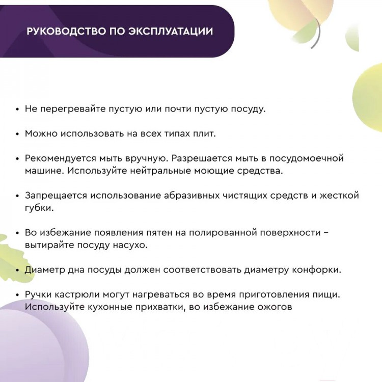 Диаметр верха кастрюли составляет 24 см, а диаметр дна — 22,5 см. Она станет отличным дополнением к вашей кухонной утвари и порадует вас своей практичностью.