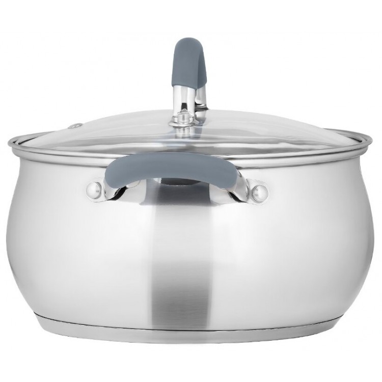 Качественный материал, красивая,прорезиненные ручки дают возможность не пользоваться прихватками,что очень удобно. Для семьи из 2 человек взяла 2,6 л и это идеальный размер. Мне очень нравятся кастрюли из нержавеющей стали,и я не ошиблась с выбором,взяв именно эту фирму