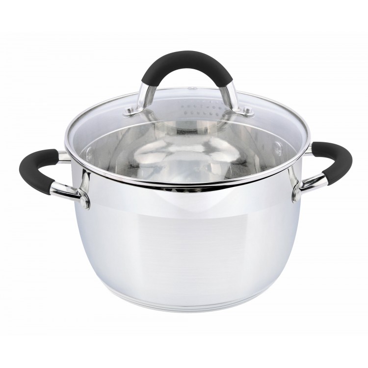 | Дополнительная информация | С крышкой-дуршлагом из жаропрочного стекла, удобными носиками для слива, эргономичными ручками с силиконовым покрытием, капсулированным пятислойным дном, зеркальной полировкой внутри, смешанной полировкой снаружи, отметками литража, подходит для всех типов плит, упакована в цветную коробку с дополнительной защитой |