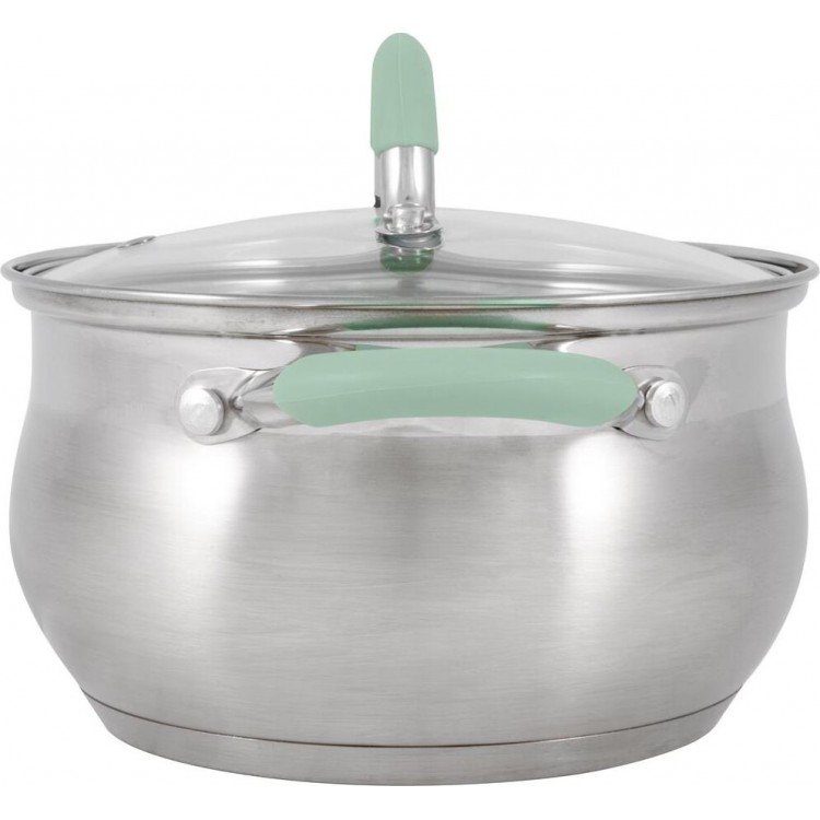 кастрюля отличная, сталь хорошая и ручки и крышка с силиконовыми вставками, очень удобно для рук, можно двигать без прихваток не обжигаясь. Рекомендую к покупке.
