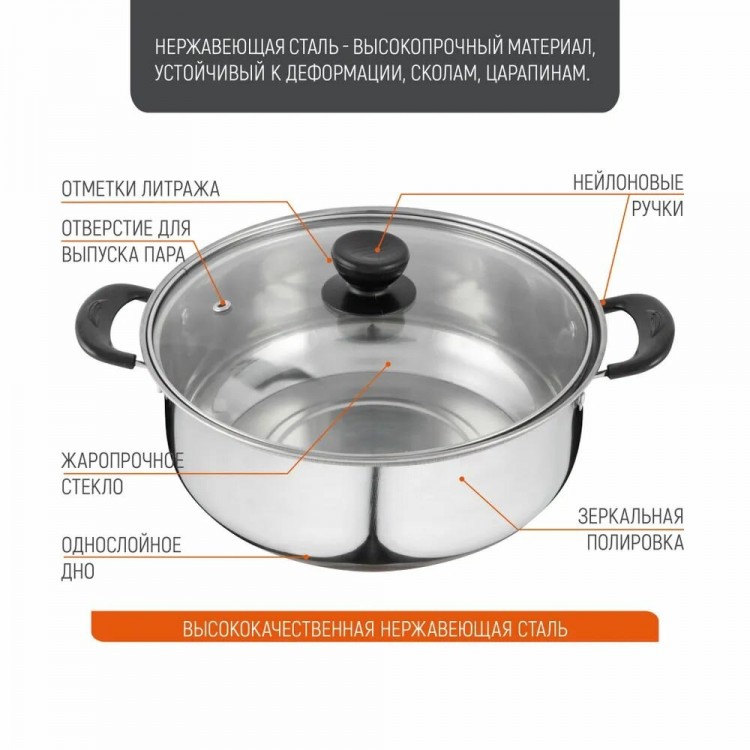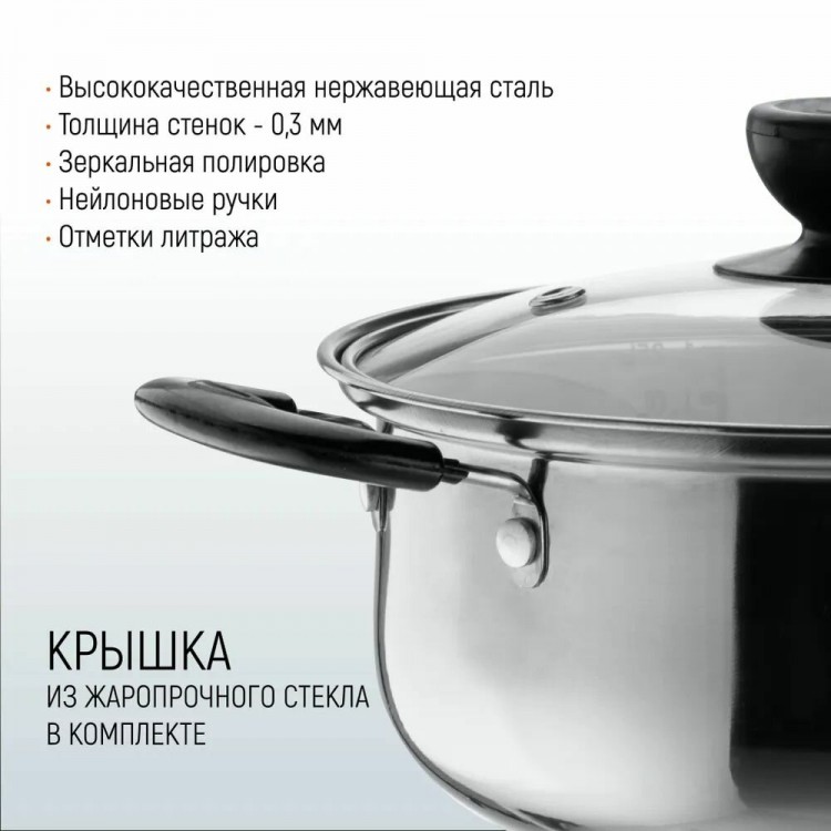 | Название | Кастрюля Promo, объем 2,2 л, из нержавеющей стали с крышкой из жаропрочного стекла арт.104614 |
