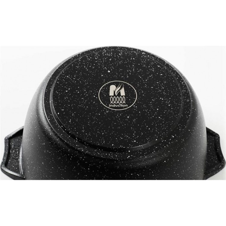 Кастрюля индукционная 4л. со стеклянной крышкой. Сверхпрочное антипригарное покрытие Greblon на водной основе без PFOA. Толщина покрытия до 55 микрон. Ресурс более 12 000 циклов. Серия "Гранит black Induction Pro". Толщина дна 7мм., толщина стенок 3,6-4мм.