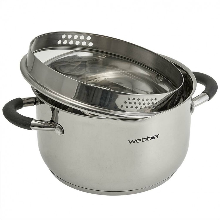| Название | Кастрюля 1.9 л, 16 см, из нержавеющей стали со стеклянной крышкой с отверстиями для слива Webber BE-371/2 |