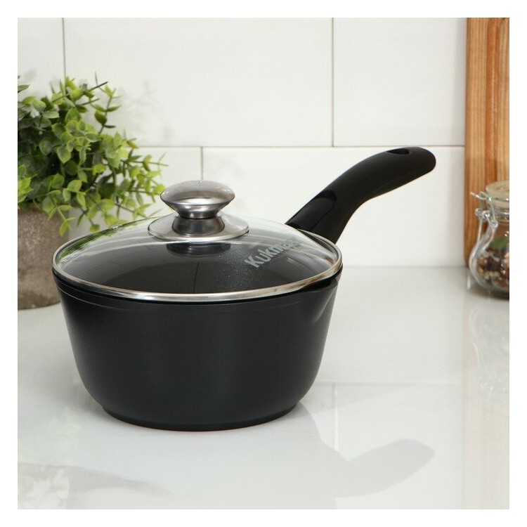 Название   Ковш Kukmara кмс17а; Бренд   Kukmara; Линейка   Традиция; Цвет товара   черная; Тип   ковш; Количество предметов   1 шт; Материал   алюминий; Антипригарное покрытие   да; Тип антипригарного покрытия   мраморное; Эмалированное покрытие   да; Мытье в посудомоечной машине   да; Особенности   мытье в посудомоечной машине, с крышкой; Объем   1.5 л; Диаметр верха   18 см; Диаметр дна   13 см; Толщина дна   6 мм; Высота стенок   9.5 см; Толщина стенок   4.5 мм; Вес   1.322 кг; Страна бренда   Россия; Дополнительная информация   Ковш литой 1,5л, съёмная ручка, стеклянная крышка; Цвет   черный;