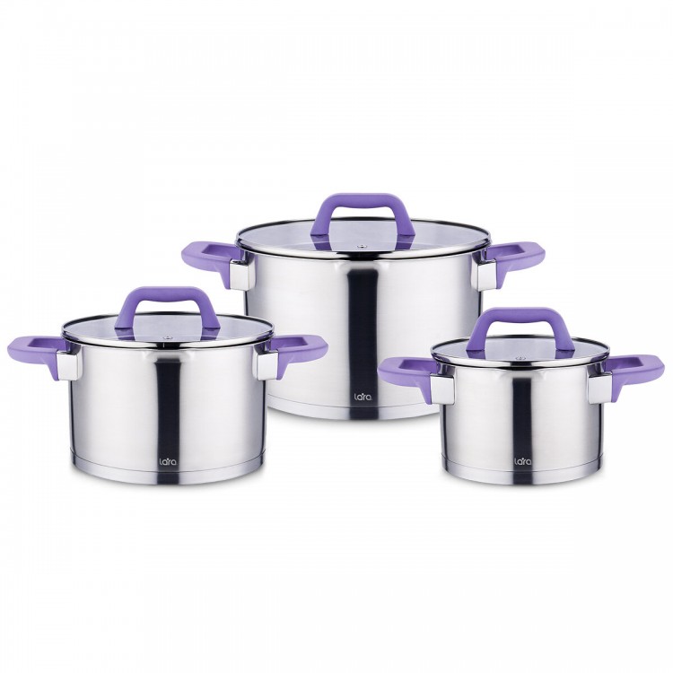 Ищете качественную посуду по доступной цене? Набор кастрюль LARA Лаванда LR02-126 — это то, что вам нужно!