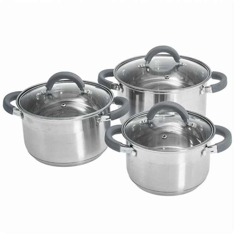 | Комплектация | Кастрюля со стеклянной крышкой 16×10,5см; 2,2л Кастрюля со стеклянной крышкой 18×11,5см; 3,0л Кастрюля со стеклянной крышкой 20×12,5см |
