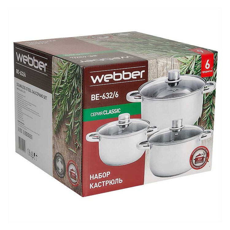 Каждая кастрюля в наборе идёт с крышкой. Это удобно и практично. Линейка Classic от Webber отличается высоким качеством и стильным дизайном. Упаковка набора — цветная коробка, что делает его отличным подарком для любой хозяйки.