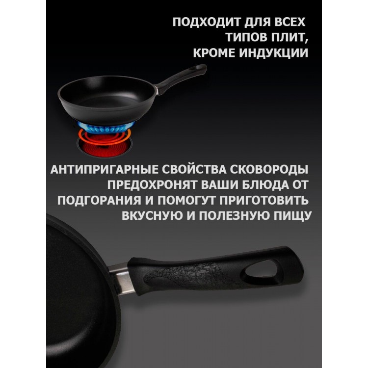 2. Высокое качество. Сковорода изготовлена из высококачественного алюминия, который обеспечивает равномерное распределение тепла и долговечность изделия.