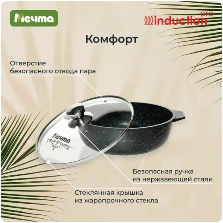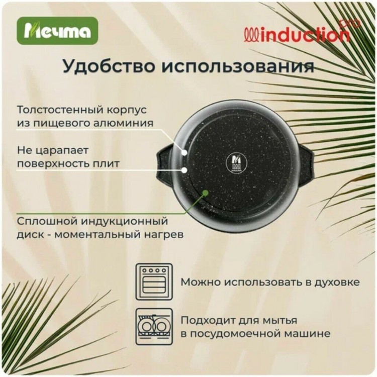 Ищете качественную сковороду для приготовления любимых блюд? Тогда сковорода-жаровня «Мечта» Гранит Black Induction Pro 34802И — это то, что вам нужно!