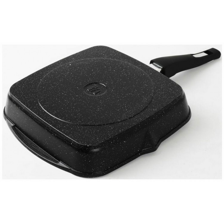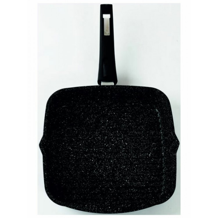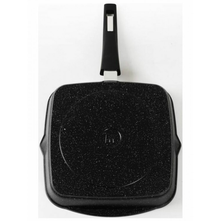 Хороша. Достаточно тяжелая. С квадратной крышечкой. Ручка съемная, технологические отверстия для выхода пара. Достаточно вместительная: 4 крупных стейка нерки помещаются комфортно. Подсолнечного масла можно не наливать, или совсем каплю капнуть. Моется хорошо обычным мягким пенным средством. Полюбила, короче ?