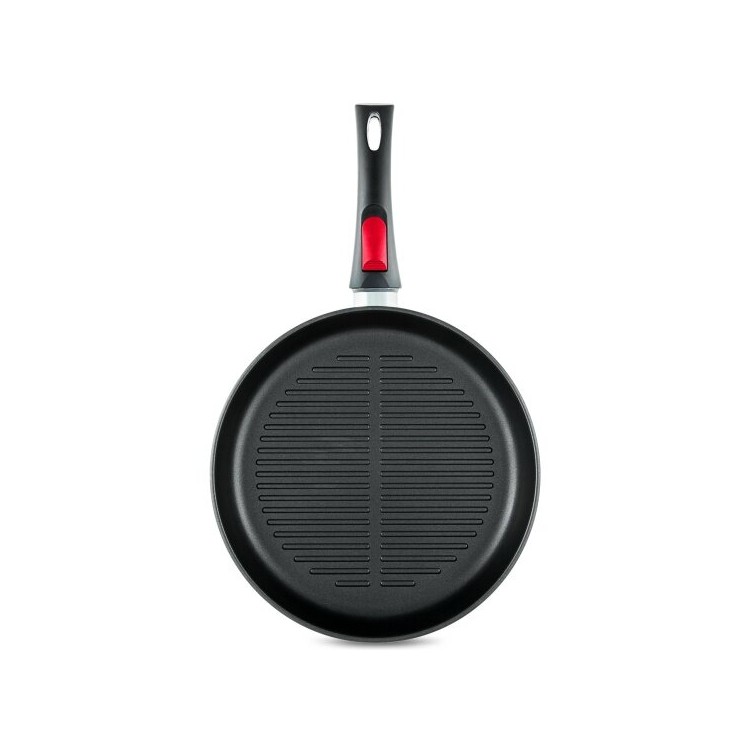 Сковорода со сменной ручкой удобна при хранении, занимает мало места и допускает совместное хранение с другими предметами. Прекрасно очищается от остатков приготовления пищи.