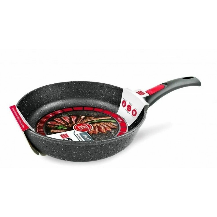 Качественная сковородка. Адекватная цена, хорошее покрытие, пища не пригорает, легко моется. Беру такую уже второй раз. Жаль,что не подходит для индукционных плит.