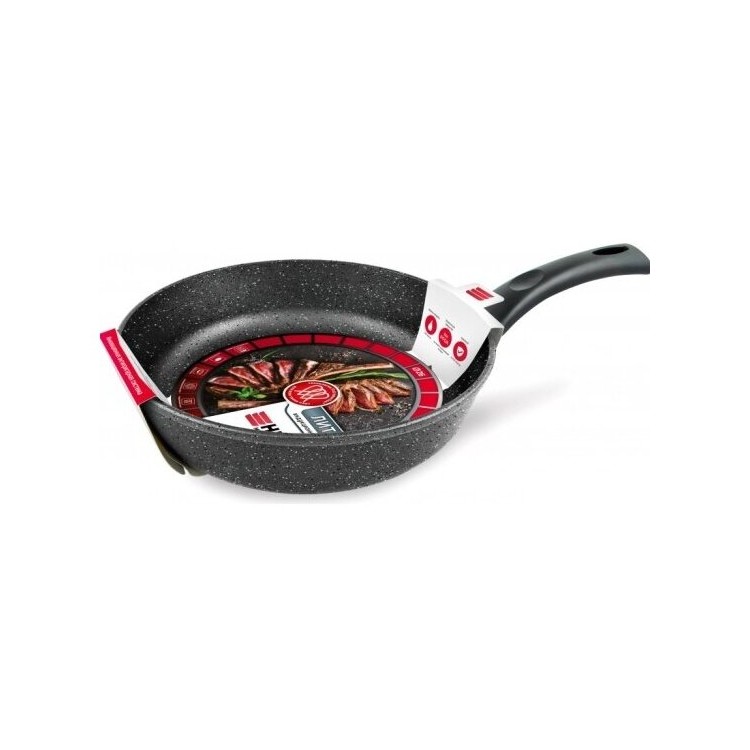 Отличная сковорода! Купила себе уже 3 штуки разного диаметра, включая блинную. Подарила родственникам и подруге 3 штуки. Всем нравятся. В пользовании почти год, без нареканий. Подходит для индукции. Тяжеленькая, не выгибается от температуры. Покрытие шикарное.