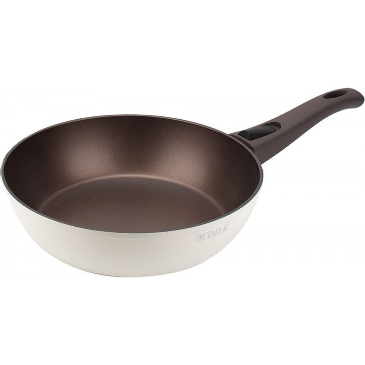 Бренд Taller; Линейка Hygge; Цвет товара бежевый; Тип сковорода универсальная; Материал алюминий; Антипригарное покрытие да; Тип антипригарного покрытия тефлоновое; Для индукционных плит да; Особенности использование в духовке, съемная ручка, термоизолированная ручка; Диаметр верха 26 см; Диаметр дна 20 см; Диаметр крышки 26 см; Толщина дна 3.8 мм; Ширина 26 см; Высота стенок 6.8 см; Толщина стенок 3.3 мм; Вес 0.87 кг; Комплектация Сковорода глубокая TalleR TR-44109 Хюгге 26 см со съемной ручкой для индукционной и других видов плит; Страна бренда Китай; Вид блюда Мясо, Овощи, Птица, Рыба; Вид ручки со съемной ручкой; Количество в комплекте, шт. 1; Совместимые плиты Для газовых плит, Для галогеновых конфорок, Для духовки, Для индукционных плит, Для стеклокерамических плит, Для электрических плит; Форма сковороды Круг; Габариты транспортной упаковки 27х32х7 см; Вес в транспортной упаковке 0.8 кг; Длина 35; Ширина 30; Высота 6; Объём 0.0063;