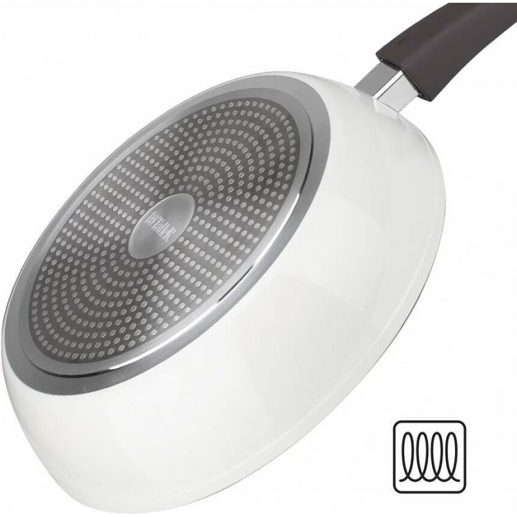 Красивая, быстро разогревается, равномерно продаривает. Кастрюли этого бренда служат уже 8 лет без нареканий. Решила попробовать сковороду, до этого пользовалась Тефаль.