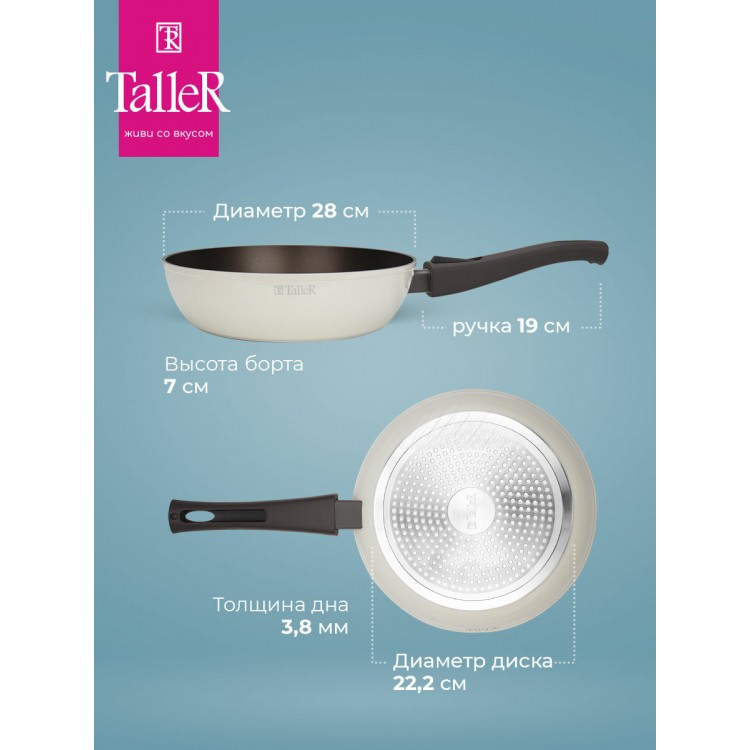 Сковорода Taller Хюгге TR-44110 съемная ручка 28 см (бежевый)