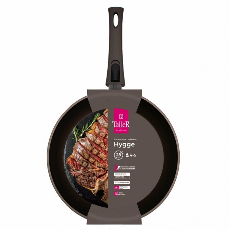 | Комплектация | Сковорода глубокая TalleR TR-44110 Хюгге 28 см со съемной ручкой для индукционной и других видов плит |