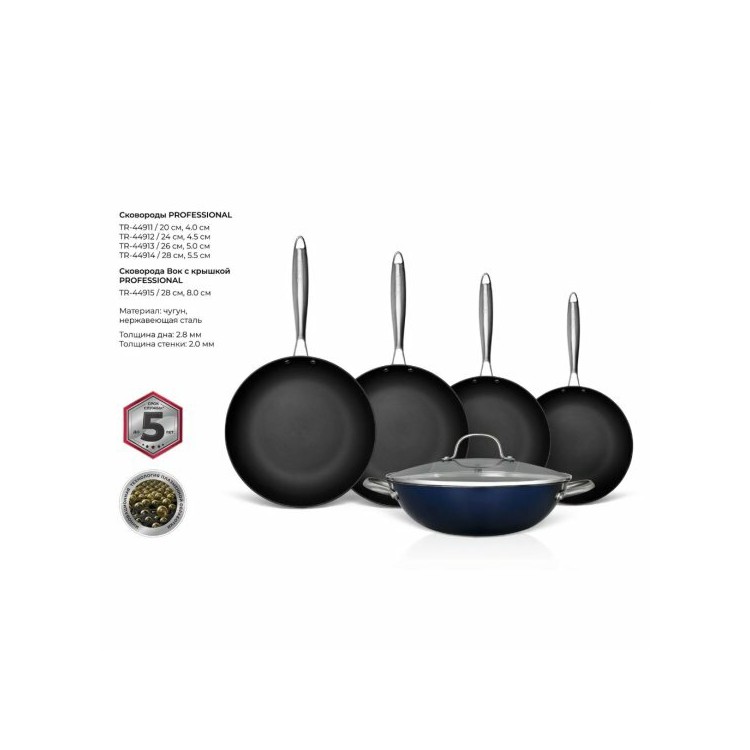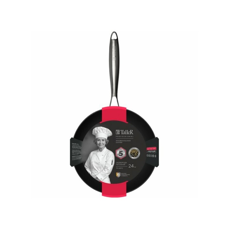 | Название | Сковорода Taller Professional 24 см, чугун/нержавеющая сталь (TR-44912) |