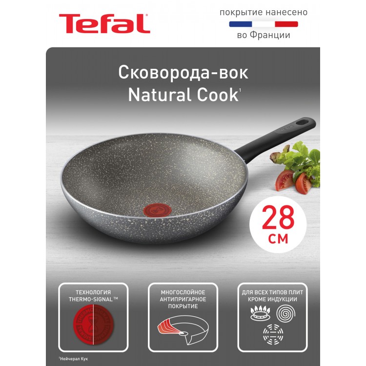 | Название | Сковорода вок Tefal Natural Cook 28 см с антипригарным покрытием и индикатором нагрева |