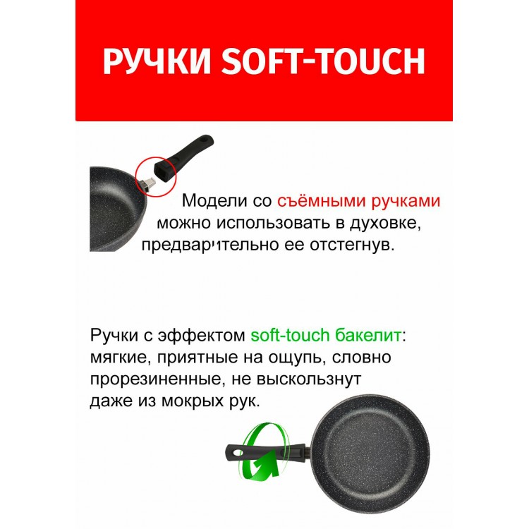 | Название | Сковорода 26см со съемной ручкой ТМ традиция Гранит плюс индукция каменное покрытие, Россия + Лопатка в подарок |