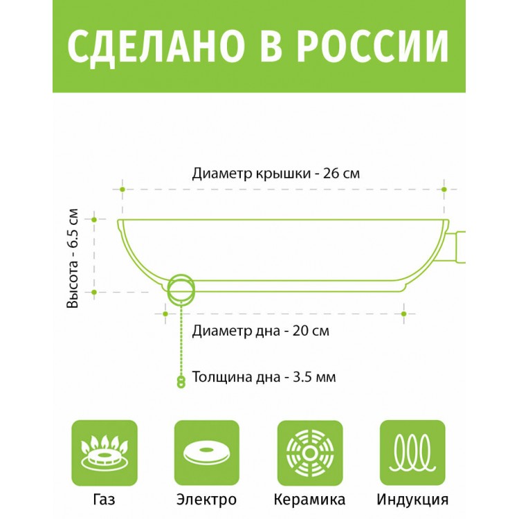 | Название | Сковорода 26см с крышкой ТМ Кристалл индукция каменное покрытие, Россия + Лопатка в подарок |