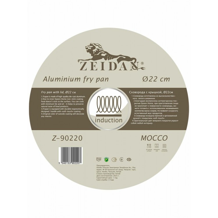 * Универсальность. Сковорода Zeidan Z-90220 подходит для всех типов плит, включая газовые, галогеновые, индукционные, стеклокерамические и электрические.